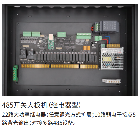 22路大功率继电器;任意调光方式扩展;10路弱电干接点5
