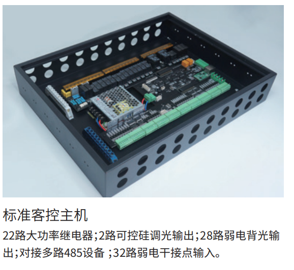 22路大功率继电器;2路可控硅调光输出;28路弱电背光输
